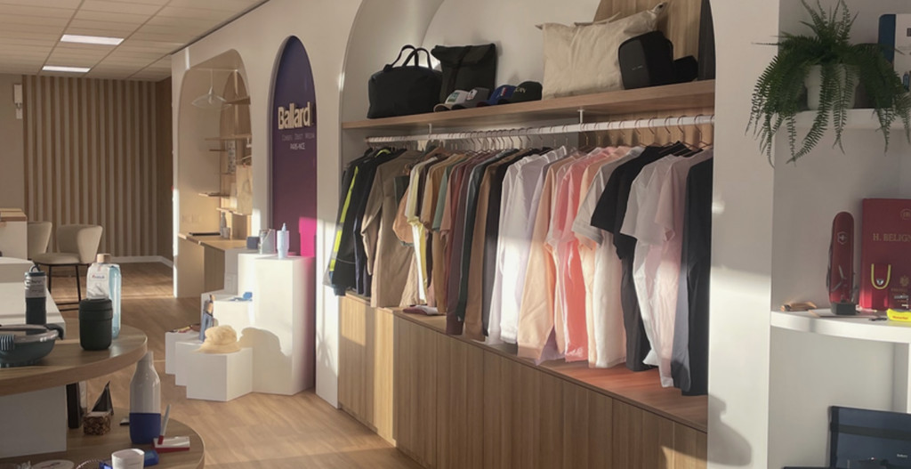 Autre pilier du nouveau site : l’atelier de marquage, véritable démonstrateur du savoir-faire de Ballard Conseil. Sérigraphie, tampographie, impression, gravure laser, DTF : les techniques se complètent pour répondre à une large palette de besoins, des petites séries express aux volumes plus importants. « On a fait le choix de réinvestir dans le marquage en France, même si ce n’est pas le plus simple », explique Romain Ballard. Formation de nouveaux collaborateurs, transmission des savoir-faire, réactivité : l’atelier interne permet de tenir des délais courts et de proposer de la personnalisation individuelle, devenue un vrai levier de valeur. La récente intégration du DTF illustre cette agilité. « C’est la technique qui répond le mieux aujourd’hui aux besoins de personnalisation en quadrichromie et petites quantités », confie-t-il. Une nouvelle machine de gravure est aussi annoncée pour le début d’année 2026.