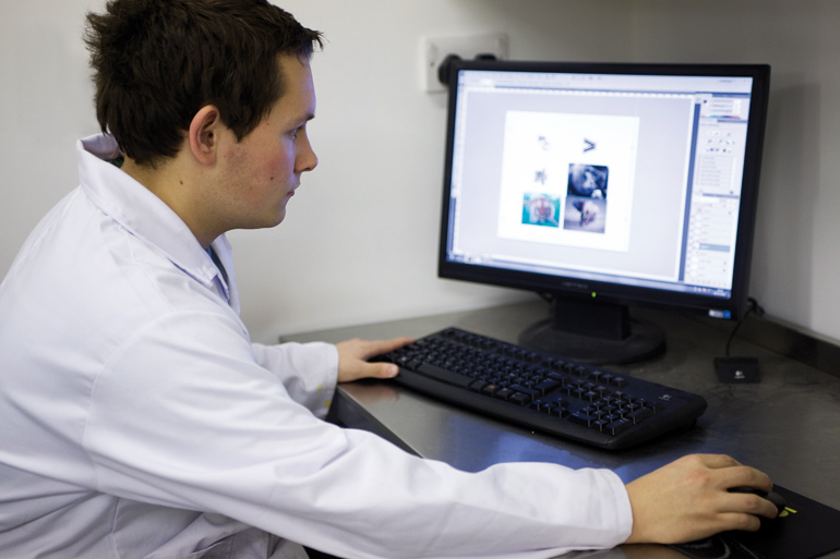 Le procédé d’imagerie permet l’incrustation directe de l’image dans la matière. Les polymères qui permettent cette incrustation directe sont développés spécifiquement pour cette application.